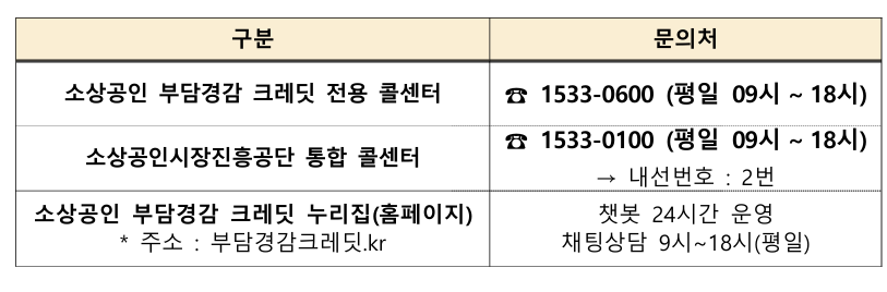 - 공식 누리집 접속: 부담경감크레딧.kr 또는 소상공인24
