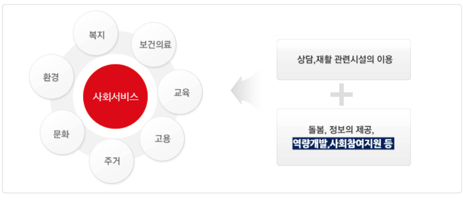 | 장애인 지원 | 활동보조, 재활서비스 |