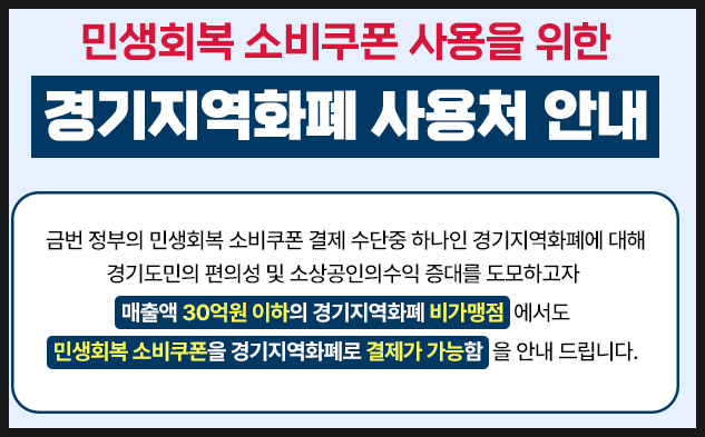경기지역화폐 민생회복지원금은 연 매출 30억 이하 가맹점에서 사용 가능합니다.