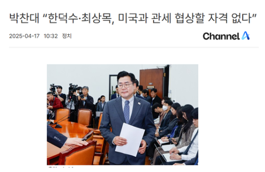 - KBS (2025년 4월 17일): “더불어민주당은 한덕수 권한대행과 최상묵 경제부총리는 협상 추진 능력이나 정당성이 없다며, 차기 정부까지 시간을 벌어야 한다고 주장했습니다.”