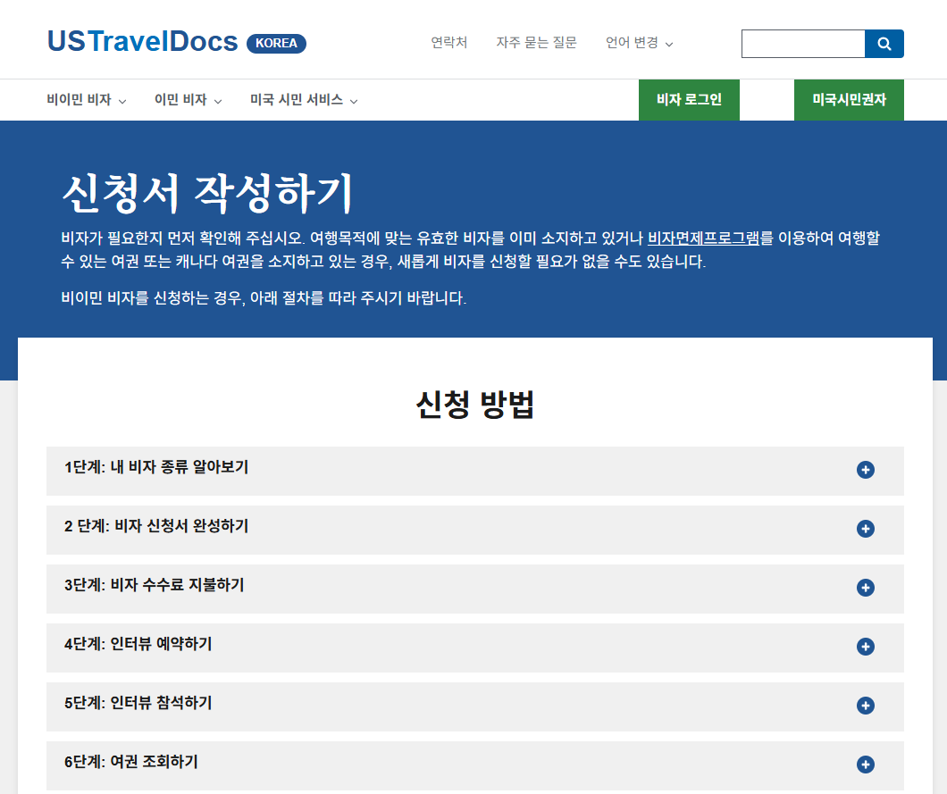 미국 대사관 공식 사이트에서 비이민 비자 인터뷰 계정을 생성하고 일정 예약이 가능합니다.