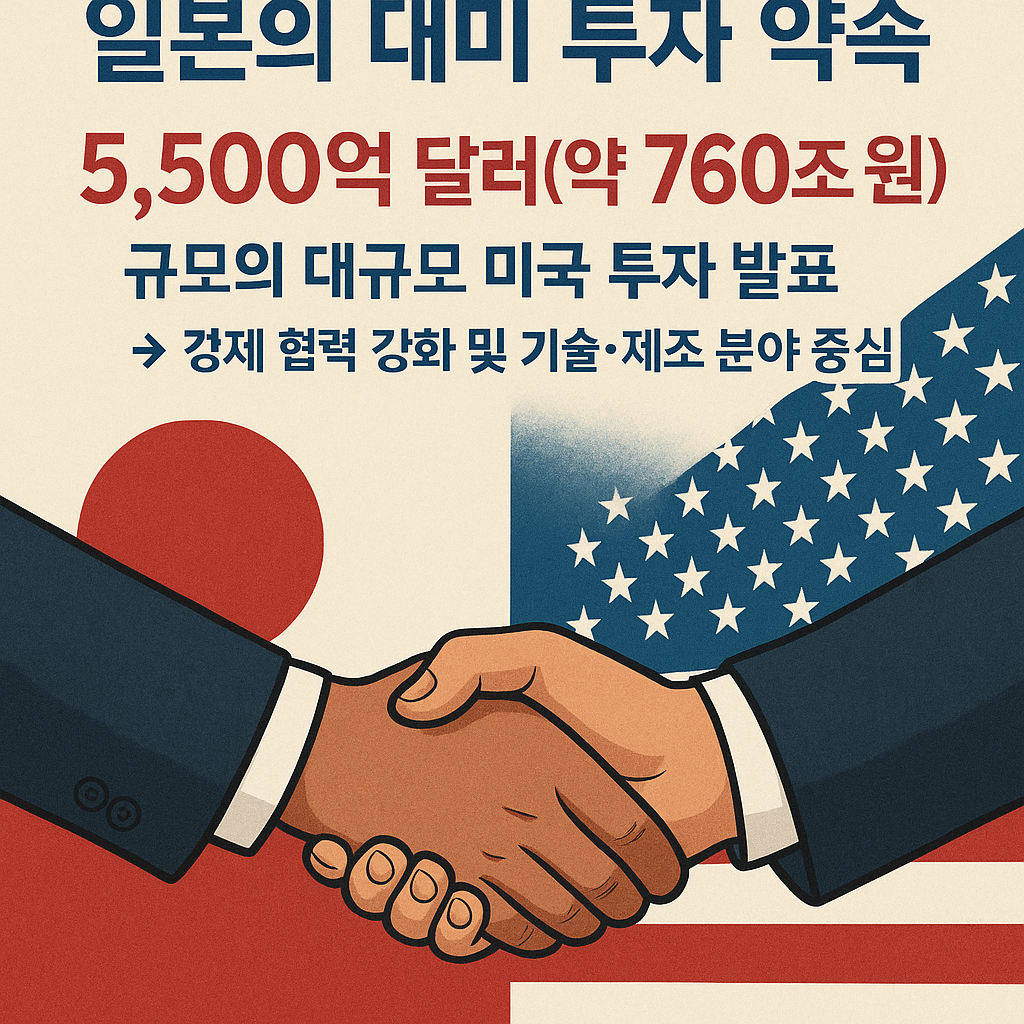 일본은 미국에 5,500억 달러(약 760조 원) 규모의 대규모 투자를 약속했습니다. 투자 분야는 반도체, AI, 항공, 철강, 에너지, 의약품 등 미국이 중시하는 전략산업 중심입니다.