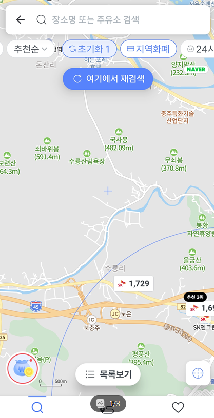 - 현재 위치 기반으로 가까운 가맹 주유소 목록 및 거리 표시
