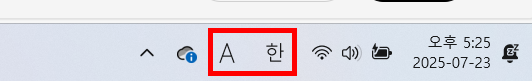 - 작업 표시줄 우측 IME 아이콘(‘가’ 또는 ‘A’) 클릭