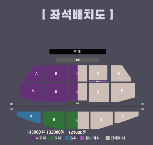 ❌ 1층 D, E 뒷줄 또는 2층 E구역은 무대와 거리 멀고 측면으로 시야 제한 가능성 있어 예매 비추천.