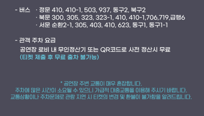 - 예매 마감 시간: 공연 전날 오후 5시까지