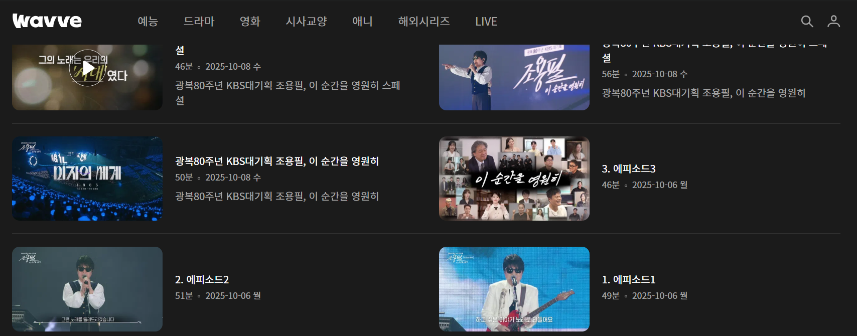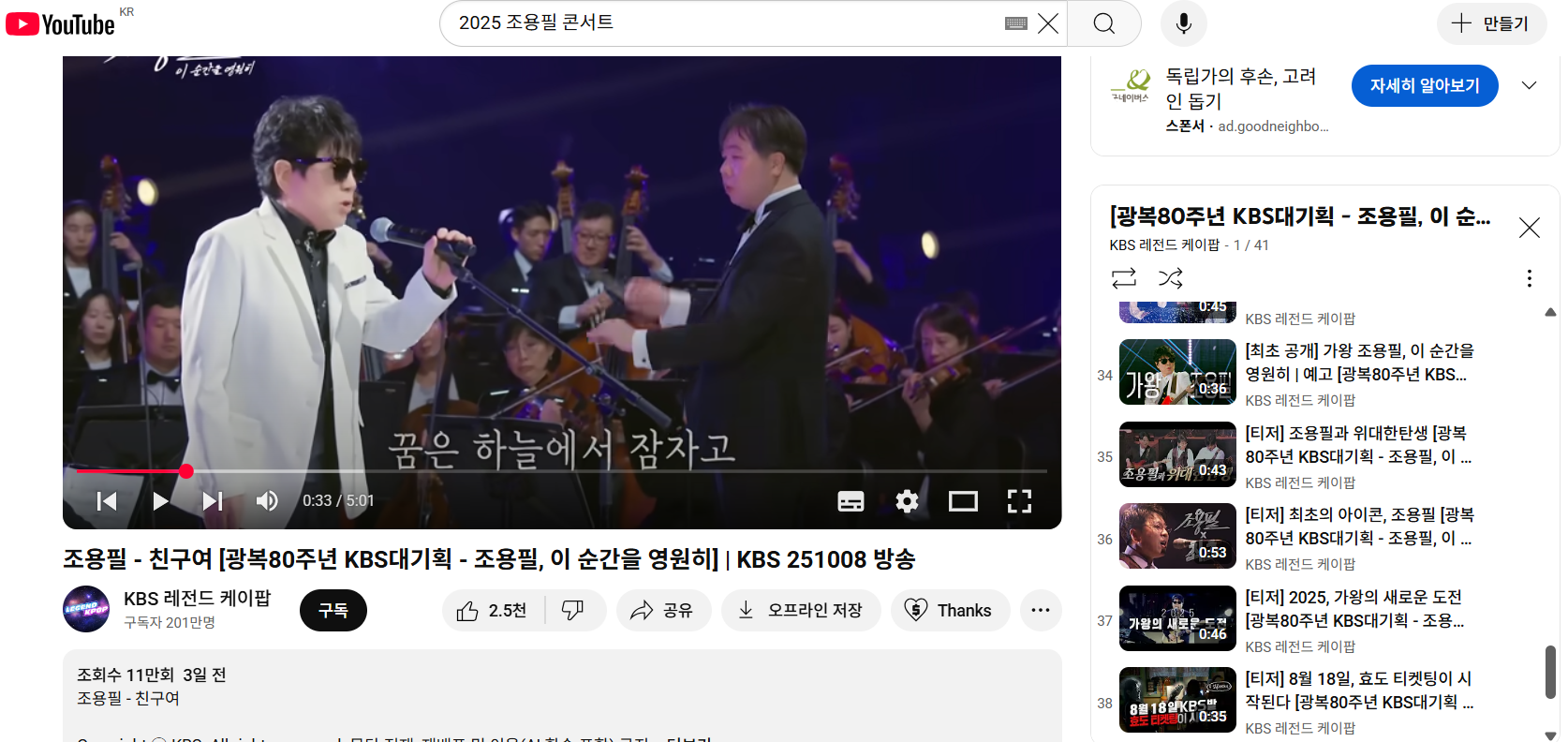 🎵 조용필 2025 광복 80주년 KBS 콘서트 셋리스트