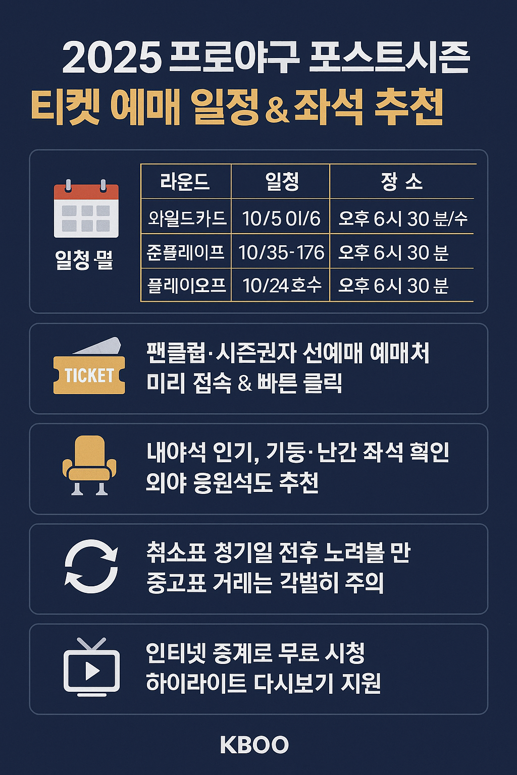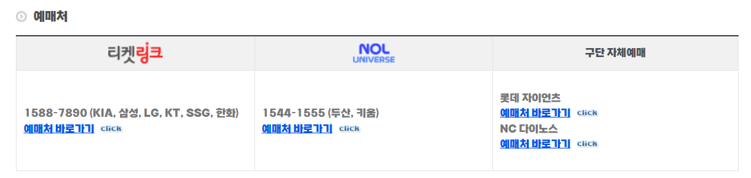 → 예매처 안내 (KBO 공식 티켓 안내 페이지)