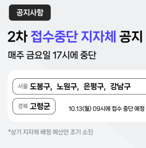 ⚠️ 2차 접수 중단된 지자체 (예산 소진)