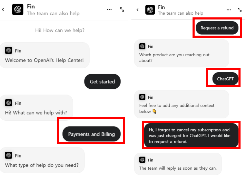 3。Payments and Billing→ Request a refund→ ChatGPT